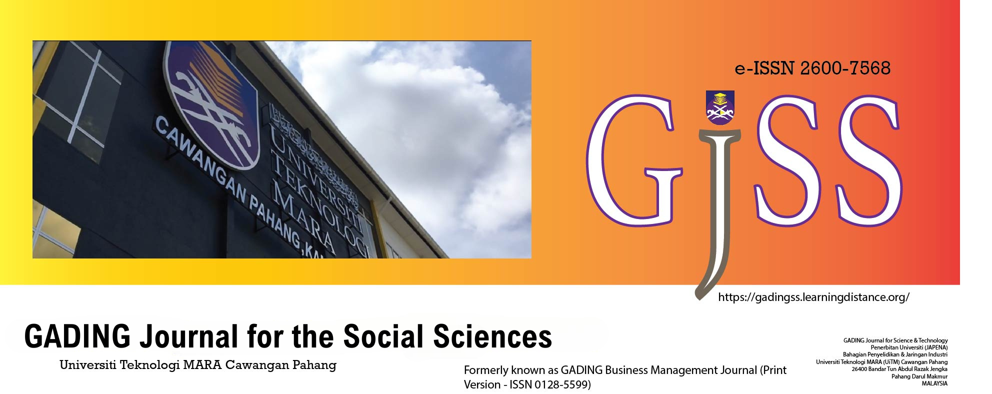 GADING Journal for the Social Sciences (GJSS) formerly known as GADING Business Management Journal is a refereed, peer-reviewed international journal published by Universiti Teknologi MARA Cawangan Pahang. The journal is OPEN ACCESS and published biannually in APRIL (No 1) and OCTOBER (No 2). Submissions and subscriptions to GJSS is FREE. The focus of GJSS is on Research Articles from the field of the Social Sciences. Submission and Publication of manuscripts/papers in GJSS is FREE and OPEN ACCESS. Submissions for GJSS will go through a SINGLE-BLIND peer review process, which normally takes 3 - 5 weeks to complete. Online Submission (Call-for-Paper) is OPEN throughout the year.